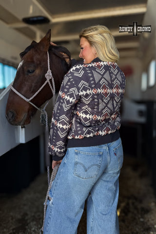 Bold patterns, vintage vibes, and major western flair- the Dolly Shine Jacket is a statement layer you’ll reach for all season long. This quilted zip-up jacket features an eye-catching Aztec-inspired pattern in rich, earthy tones with contrast ribbed cuffs and hem for a classic bomber-style fit. Lightweight yet cozy, it’s finished with functional pockets and an easy silhouette that layers like a dream.